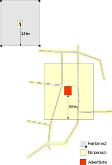 Innerhalb der Beobachtungsräume werden repräsentative Testgebiete angelegt. Jedes Testgebiet umfasst ein bis mehrere Zielökosysteme (= Anbaufläche der Kulturart) sowie die in einem bestimmten Radius um diese herum liegenden Nicht-Zielökosysteme (= alle im Umfeld der Anbaufläche liegenden Ökosysteme). Für die Untersuchugen im Zielökosystem sind Dauertransekte einzurichten und vegetationskundlich zu untersuchen (Erfassung der vorhandenen Arten und Schätzung ihrer Deckungsgrade). Die Transektuntersuchungen werden durch populationsbiologische Untersuchungen ergänzt. In Nicht-Zielökosystemen werden vor allem die Standorte, die von Raps und seinen Kreuzungspartnern bevorzugt besiedelt werden, nach den Zielarten abgesucht, um eine mögliche Ausbreitung der transgenen Eigenschaft über Pollen- und Samenverbreitung zu erfassen. Dies beinhaltet eine Biotoptypenkartierung sowie eine floristische Kartierung der Zielarten. Je nach Größe und vorgefundener Population ist zu entscheiden, ob Dauerflächen zur weiteren Beobachtung der Veränderung bestehender Pflanzengesellschaften einzurichten sind.